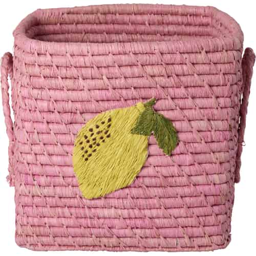Rice Raffiakorg - Fyrkantig - Broderi "Big Lemon" - Raffiahandtag - Liten