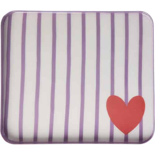 Rice Rektangulär metallbricka - Vit - Lila ränder - Hjärta - Liten