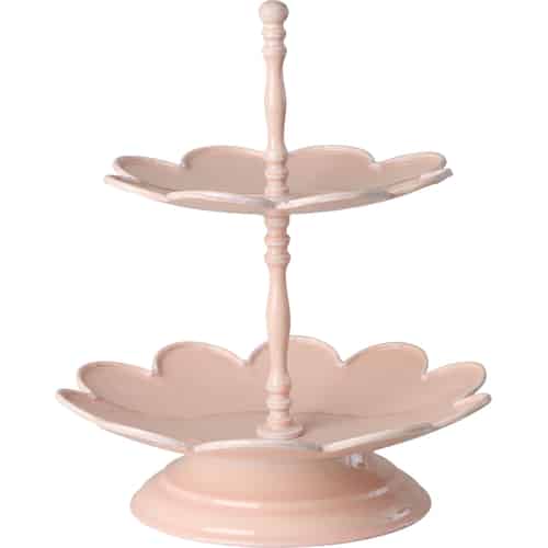Rice Metall etagär - Blomformad tallrik - 2 våningar - Ljusrosa