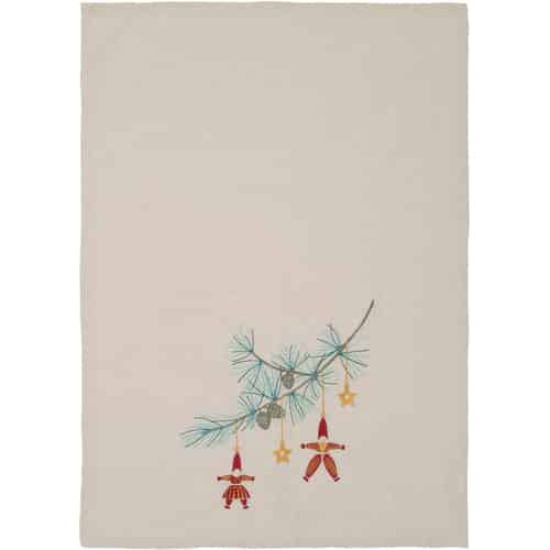 GreenGate Kökshandduk Xmas Branch Pale Grey med Broderi