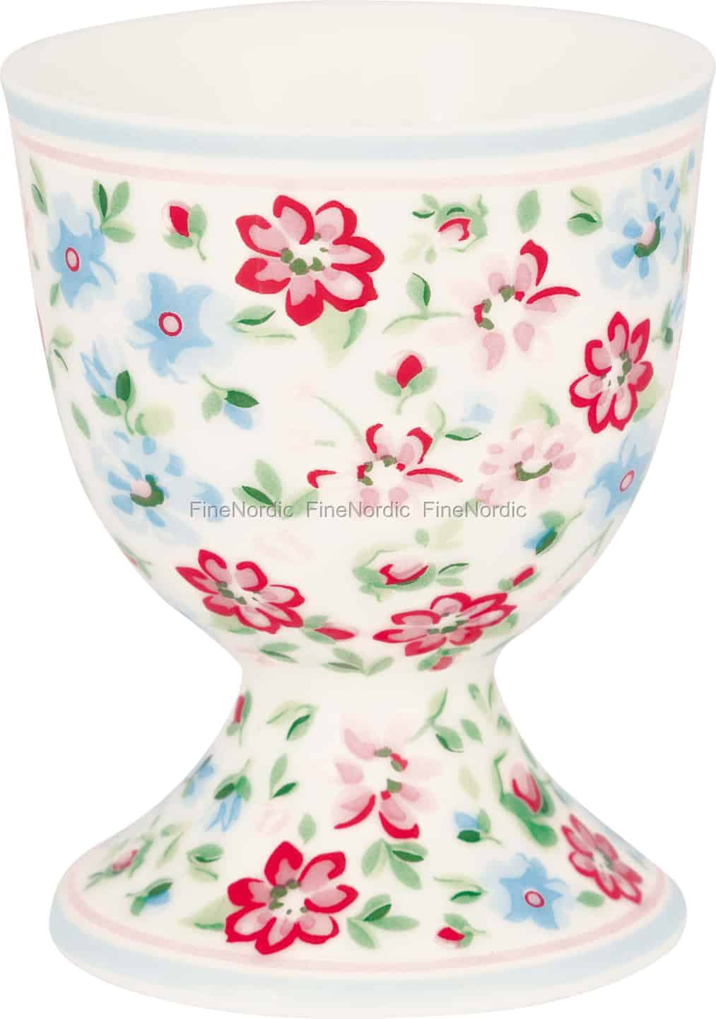 Föreställ dig en ljus och glad morgon, med doften av en lantlig trädgård som letar sig in. Äggkoppen Louisa White fångar denna enkla glädje och tillför en ljuvlig blomsterprakt till ditt frukostbord.