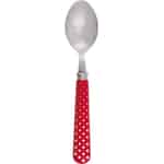 - Lekfull prickig design: De glansiga röda handtagen, prydda med klassiska vita prickar, fyller ditt bord med en känsla av nostalgisk charm och glädje, vilket gör varje måltid lite mer speciell.