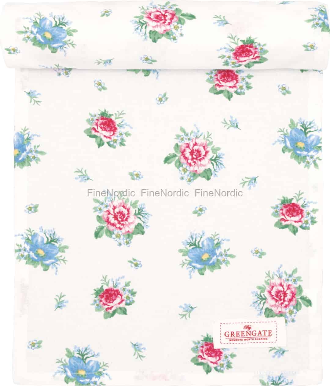 Föreställ dig ditt matbord som blommar upp med charmen från en solstänkt trädgård. Bordslöparen Alivia White från GreenGate fångar precis den känslan, med sitt delikata blommönster utspritt över mjuk, ren bomull. Det är en inbjudan att sakta ner och njuta av vackra stunder i hemmet.