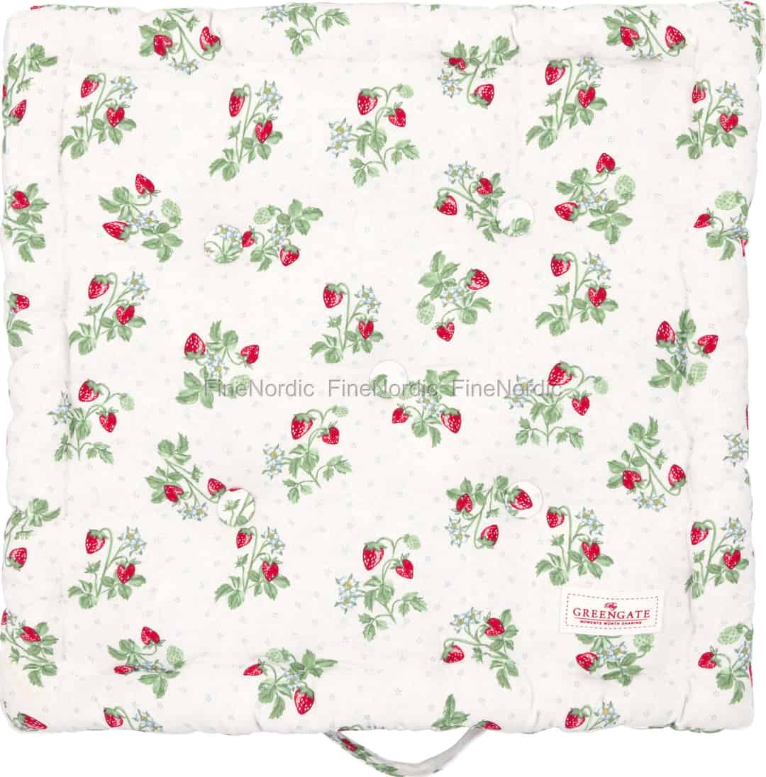 Föreställ dig en stilla vrå i en solstänkt trädgård. GreenGate-kudden Berry White fångar detta idylliska ögonblick perfekt, där dess charmiga jordgubbstryck på mjuk bomull bjuder in dig att sakta ner och finna en stund av ro.