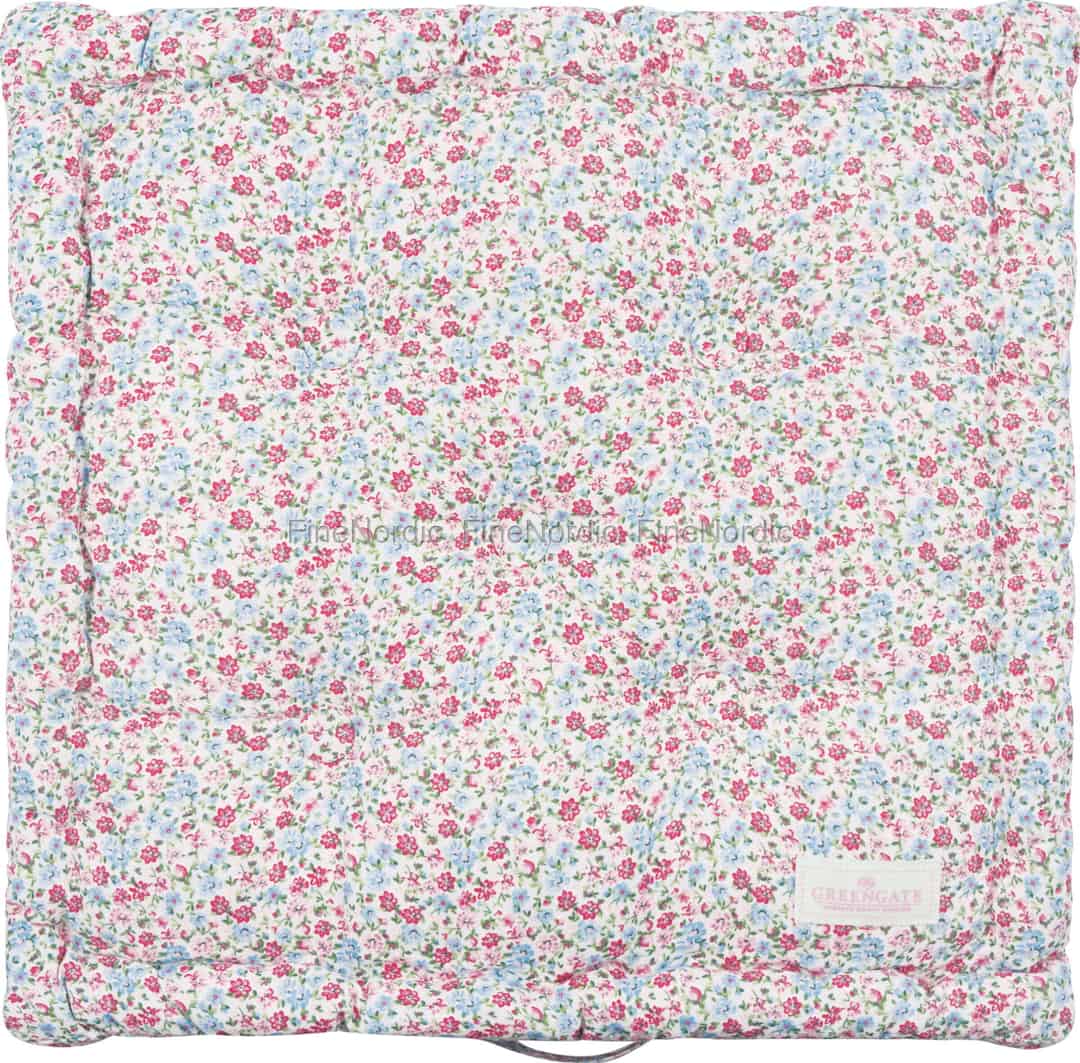 Föreställ dig hur du förvandlar en enkel bänk eller en solbelyst fönsterplats till din favoritplats för en stunds vila. GreenGates kudde Louisa White bjuder in dig att göra just det. Ytan är som en målarduk av skira blommor, där små rosa och blå kronblad dansar över en krispigt vit bakgrund, och påminner om en vildvuxen sommaräng i full blom. Den mjuka, quiltade bomullen känns underbart inbjudande och lovar en stund av ren komfort precis när du behöver det.