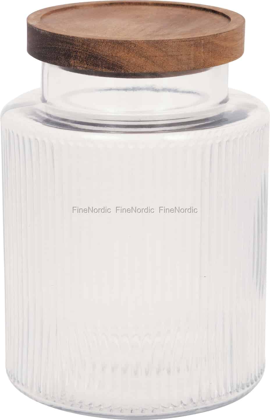 Föreställ dig ditt skafferi, vackert organiserat med basvaror som visas upp i elegant, ljusfångande glas. Denna förvaringsburk från GreenGate tillför en stillsam charm till dina kökshyllor, där det räfflade glasets klarhet möter värmen från ett lock i naturligt trä.