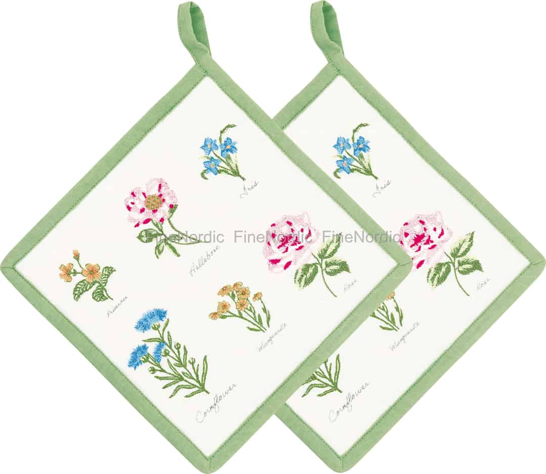 - Utsökta botaniska detaljer: Varje grytlapp pryds av vackert sydda blommor, från rosor till blåklint, komplett med deras namn i elegant skrivstil. Detta förvandlar en enkel köksdetalj till ett litet konstverk att njuta av varje dag.