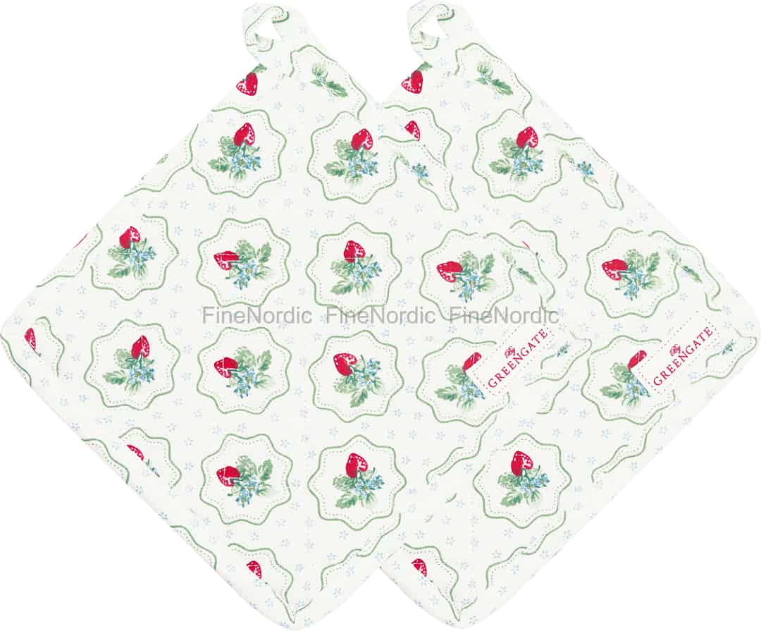 GreenGate Grytlappar "Berry Petit White" - Set om 2