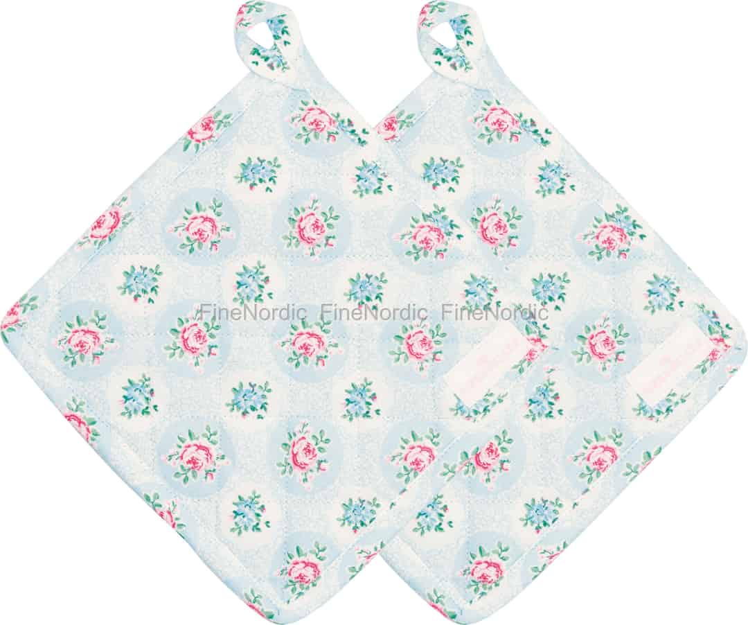 Föreställ dig att du tar ut ett nybakat bröd ur ugnen och luften fylls av en ljuvlig doft. Med grytlapparna Elle Pale Blue blir detta enkla ögonblick en vacker stund, där dina händer skyddas av mjuk, quiltad bomull och tidlös blomstercharm.