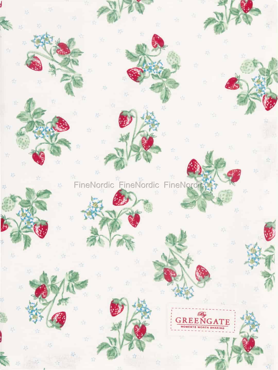 Låt den ljuva, enkla glädjen från en sommaräng blomma ut i ditt hem med GreenGates kökshandduk Berry White. Designen är en hyllning till kära minnen av att plocka vilda smultron, med mogna röda bär, fräscha gröna blad och klasar av små blå blommor spridda över en mjuk, benvit bomullsduk. Det är ett klassiskt GreenGate-mönster som fångar märkets filosofi om att finna skönhet i vardagliga ögonblick, och förvandlar en enkel köksdetalj till ett litet konstverk som berättar en historia om värme och nostalgi.