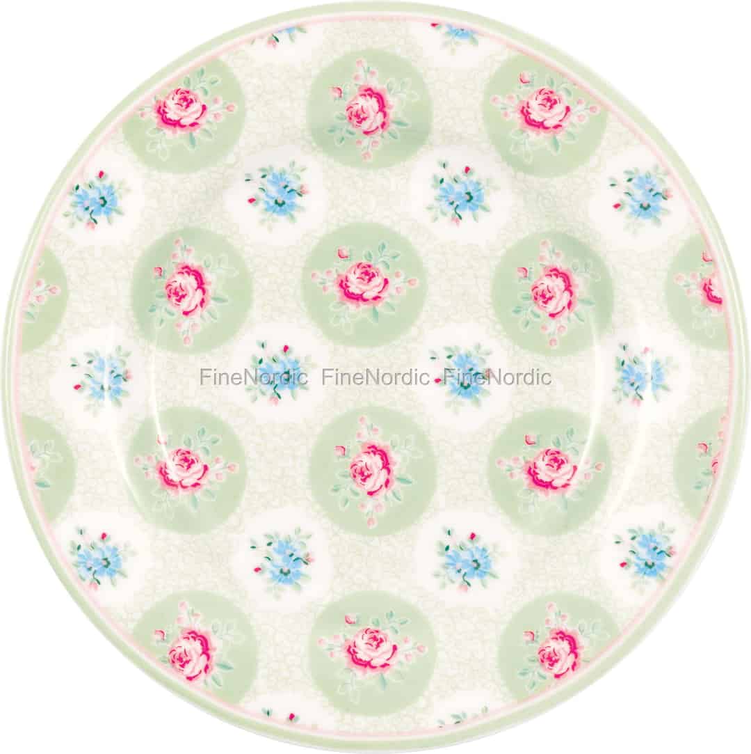 Föreställ dig en stilla morgonstund, en bit nybakad kaka som väntar bara på dig. Tallriken Elle Pale Green från GreenGate väcker denna fridfulla scen till liv med sitt fina blommönster och sina mjuka, lugnande färger.