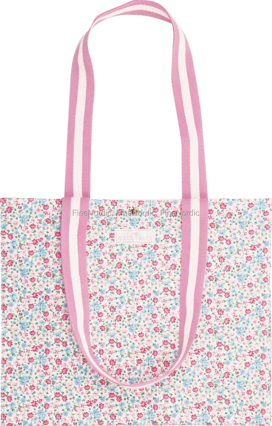 Fånga den glädjefyllda känslan av en prunkande sommarträdgård i din vardag. Shopparväskan Louisa White från GreenGate är smyckad med ett ljuvligt blommönster, skapad för att ge en känsla av enkel, innerlig skönhet till varje utflykt.