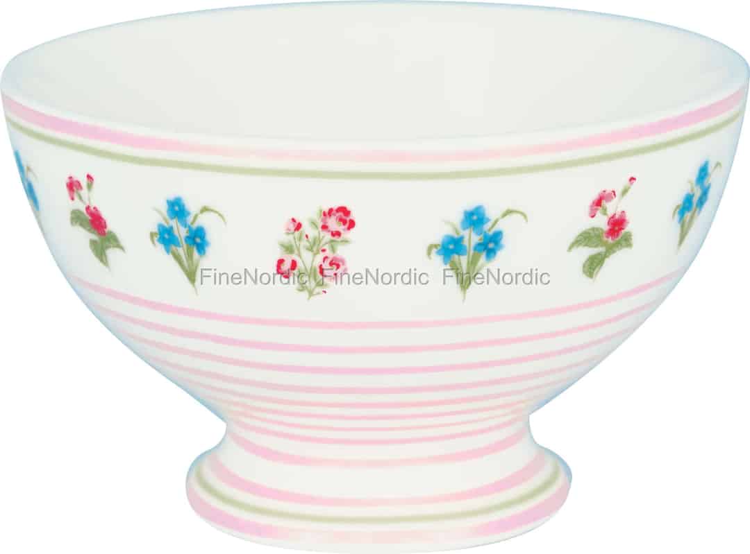 Oavsett om du fyller den med färska jordgubbar till morgonyoghurten, serverar choklad efter middagen eller helt enkelt använder den för att förvara småsaker på ditt nattduksbord, skänker Liana White-skålen en känsla av glädje och nostalgi. Det är ett föremål som berättar en historia om att leva långsamt och uppskatta de små, vackra detaljerna som gör ett hus till ett hem. Mixa och matcha med andra mönster från GreenGate för att skapa din alldeles egna, unika samling.
