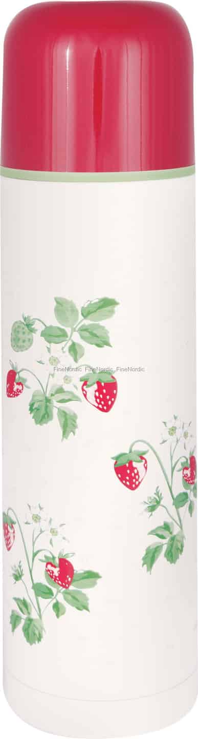 Låt den ljuvliga termosflaskan Berry White från GreenGate förflytta dig till ett soligt jordgubbsland en perfekt sommardag. Det vackert detaljerade mönstret, med mogna röda bär och skira vita blommor, är signifikativt för GreenGates förmåga att blanda nostalgi med tidlös skandinavisk design. Den benvita bakgrunden utgör en mjuk duk för det livfulla trycket, medan det glänsande röda locket skapar en glad kontrast som påminner om nyplockad frukt. Detta är inte bara en behållare för din dryck; det är ett stycke vardagskonst som berättar en historia om de enkla nöjena i livet.