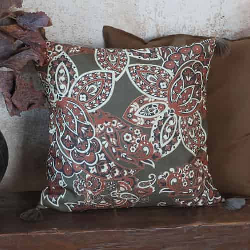 Chic Antique Aix Kuddfodral med Tofsar och Paisleymotiv Verte och Teracotta 50 x 50 cm