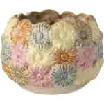 - En väv av blommande textur: Krukan är täckt av en ljuvlig relief av prästkragar, vilket ger en unik, taktil kvalitet som tillför djup och karaktär till dina favoritkrukväxter eller örter.
