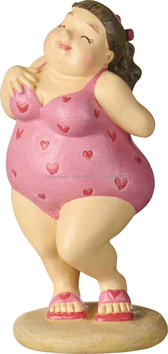 Minns du de där långa, lata sommareftermiddagarna vid havet? Denna underbara figurin från Ib Laursens kollektion 'Beach Queens' är en hyllning till de där värdefulla stunderna. Med ett belåtet leende och ögonen slutna mot solen förkroppsligar hon den rena, enkla glädjen i att känna sanden mellan tårna. Hennes charmiga rosa baddräkt, prydd med söta små hjärtan, och den lilla rosetten i håret är detaljer som berättar en historia om avkopplad, ohämmad lycka.