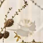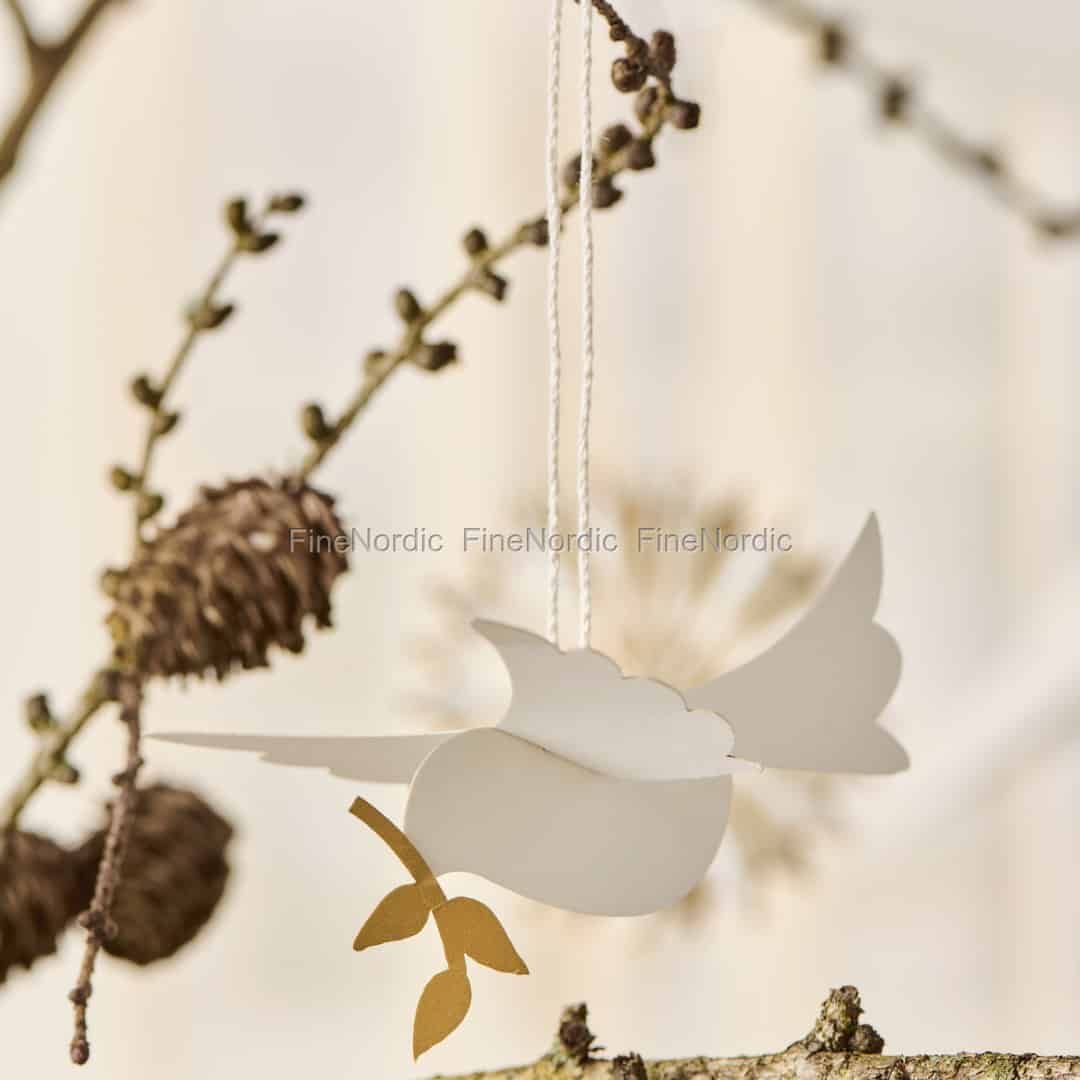 Upptäck den enkla skönheten hos denna pappersfågel, ett bevis på Ib Laursens kärlek till innerlig, nordisk design. Varje detalj, från de lager-på-lager-vingar som antyder en mjuk flykt till den matta finishen på det benvita pappret, är noga genomtänkt. I näbben bär den en liten gyllene kvist – en liten men hoppfull accent som fångar ljuset med ett mjukt skimmer. Detta är mer än bara en dekoration; det är ett litet konstverk, skapat för att uppskattas för sin stillsamma elegans.