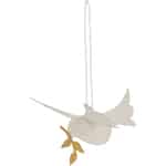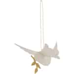 Föreställ dig denna fridfulla budbärare pryda en gren i din julgran, inbäddad bland tallbarr och tindrande ljus. Den är lika hemma knuten på en speciell gåva, hängande från ett rustikt kvistarrangemang på spiselkransen, eller som en del av en rofylld fönsterdekoration. Dess lätta natur låter den dansa i den minsta bris, vilket ger en subtil känsla av liv och stillhet till ditt hem under hela högtiden och långt därefter.