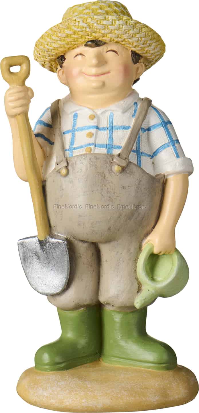 Placera denna charmiga karaktär på en köksfönsterbräda där du odlar dina örter, eller låt honom stå vakt över suckulenterna i din bokhylla. Hans närvaro är en mild påminnelse om att sakta ner och uppskatta naturens små underverk. Den högkvalitativa konstruktionen i polyresin fångar varje förtjusande detalj, från texturen på hans hatt till den metalliska glansen på spaden, och skapar en tidlös pjäs som för med sig en liten berättelse och massor av värme in i ditt hem.