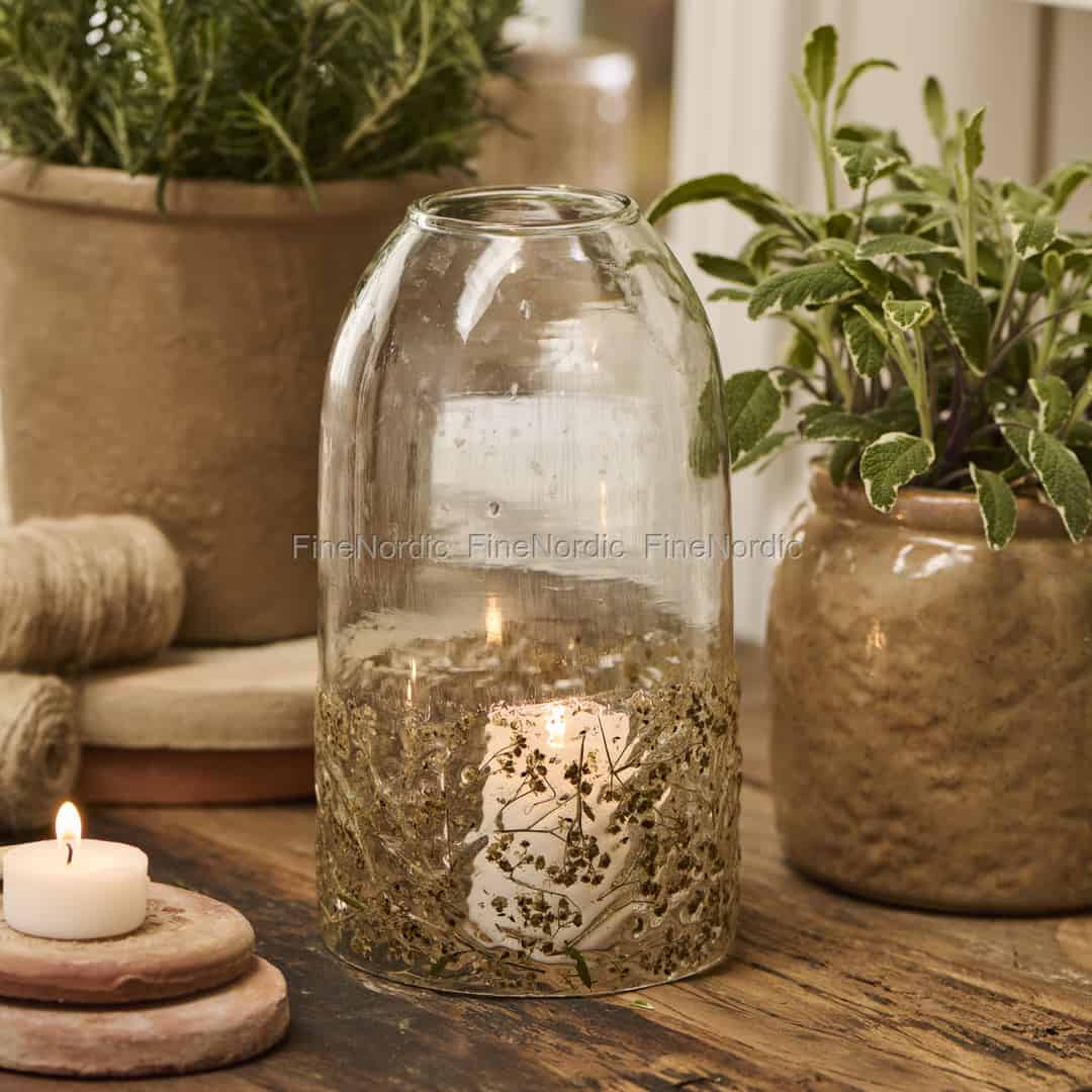 Ib Laursen glasskydd med gräs i glas öppen i toppen, köp här hos FineNordic.