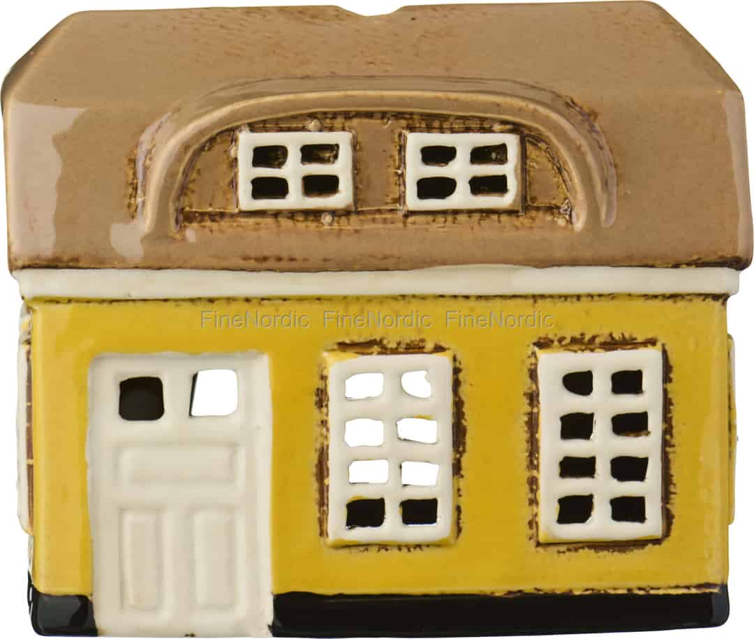 Föreställ dig ett mjukt ljus som flimrar från fönstren på ett glatt gult hus, som för tankarna till en solig gata i en dansk kuststad. Detta charmiga keramikhus från Ib Laursen skapar en liten oas av äkta hygge i ditt hem.