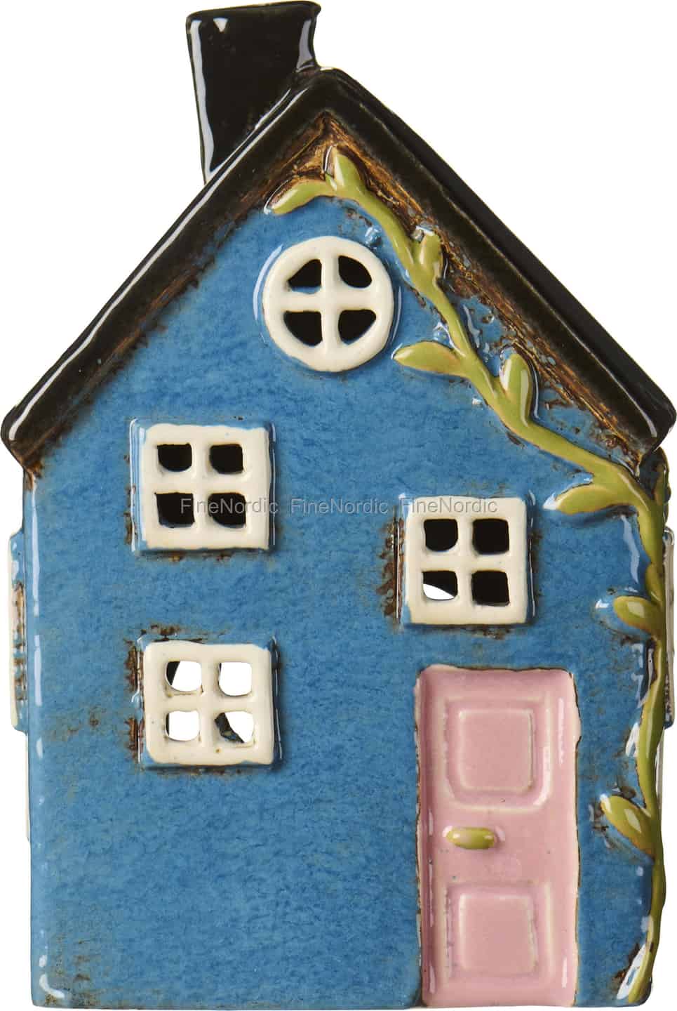 Inspirerat av den livfulla, historiska hamnen i Köpenhamn är Nyhavn-huset mer än bara en ljushållare; det är en egen liten värld. Lägg märke till de förtjusande detaljerna som väcker det till liv: den vackra rosa dörren som ser ut att välkomna dig in, den grönskande bladrankan som klättrar på den texturerade blå fasaden och det glansiga svarta taket som lovar skydd. Varje detalj är omsorgsfullt utformad i keramik, med en rustik finish som vittnar om karaktären och historien hos byggnaderna som inspirerade det. Det är en pjäs som berättar en historia om glada danska gator och mysiga kvällar.