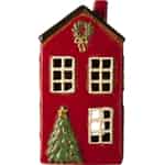 - Charmiga handgjorda detaljer: Tillverkad av högkvalitativ keramik med en fyllig, glansig röd glasyr, har detta hus förtjusande formgjutna detaljer, från den lilla kransen till den festliga julgranen.