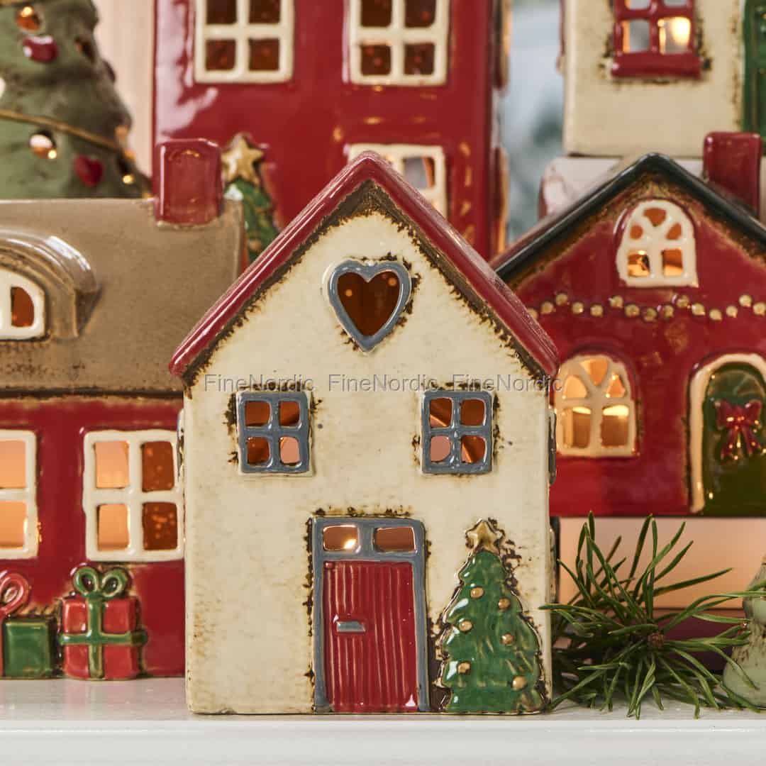 Inspirerat av den stilla magin från en skandinavisk julafton är Stillenat-huset för värmeljus från Ib Laursen en liten skatt fylld med sagolik charm. Varje detalj, från den glada röda dörren till den lilla julgranen som står på vakt, är utformad för att väcka en känsla av nostalgi och förundran. Keramiken har en rustik, spräcklig glasyr och konstfullt nötta kanter, vilket ger den känslan av ett föremål som har älskats i generationer. Det är en vacker inbjudan att sakta ner och njuta av säsongens enkla glädjeämnen.