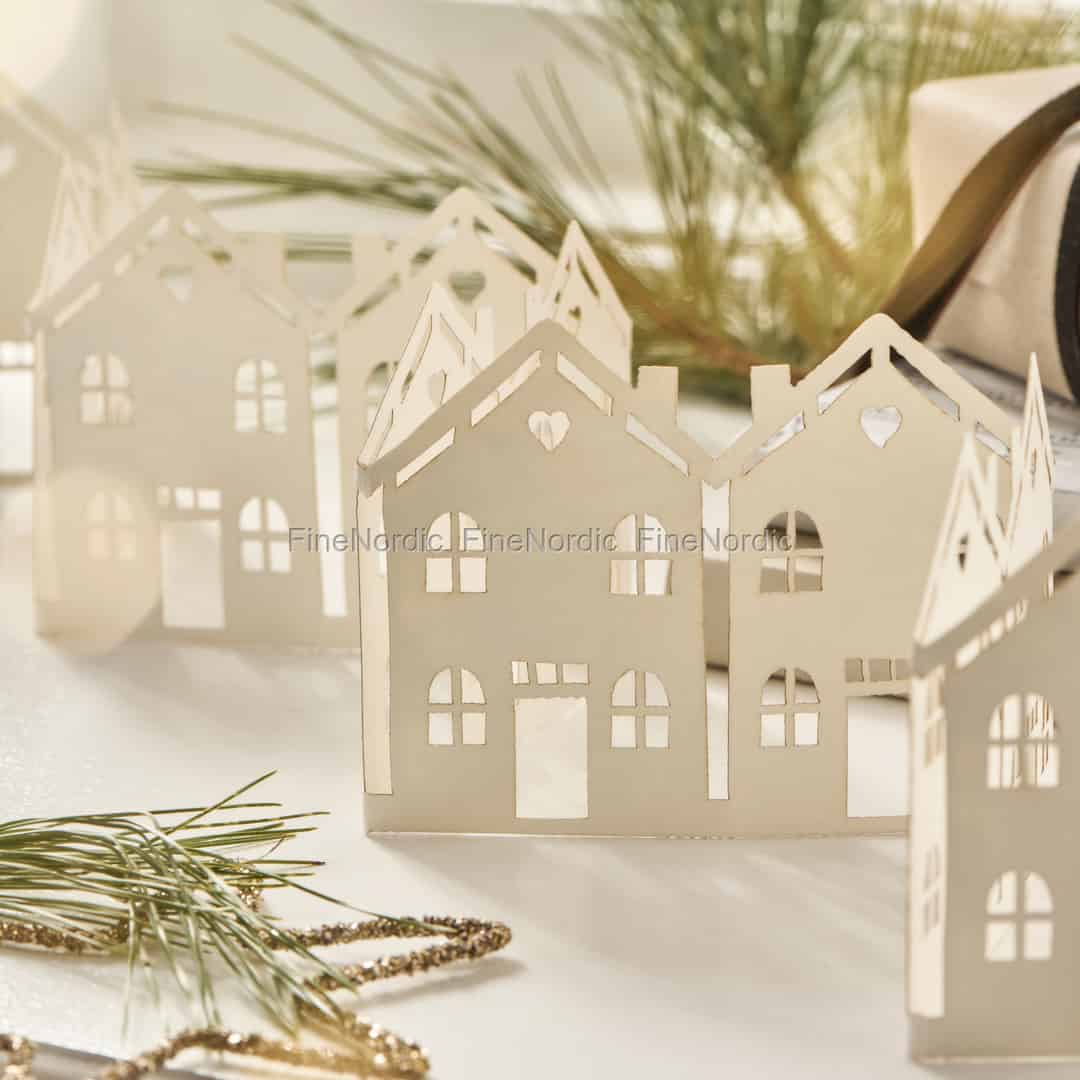 Låt den stillsamma charmen från en skandinavisk vinter flytta in i ditt hem med denna utsökta pappersdekoration från Ib Laursen. Veckla ut denna fina gata med stadshus och se hur en miniatyrvärld väcks till liv. De detaljrika utskärningarna – från de välvda fönstren till det lilla hjärtat i varje gavel – är designade för att fånga ljuset och skapa ett vackert spel av ljus och skugga som känns både fridfullt och festligt. Det är en enkel, elegant dekoration som berättar en historia om gemenskap och värme, och påminner om en promenad längs kullerstensgator på en krispig julaftonskväll.