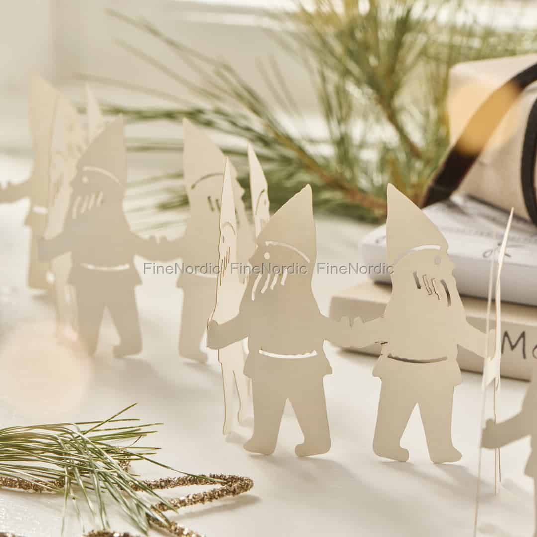 Veckla ut en liten bit skandinavisk jultradition med denna förtjusande pappersgirlang från Ib Laursen. En oavbruten kedja av tomtenissar som håller varandra i händerna skänker en stillsam, folkloristisk charm till dina juldekorationer.