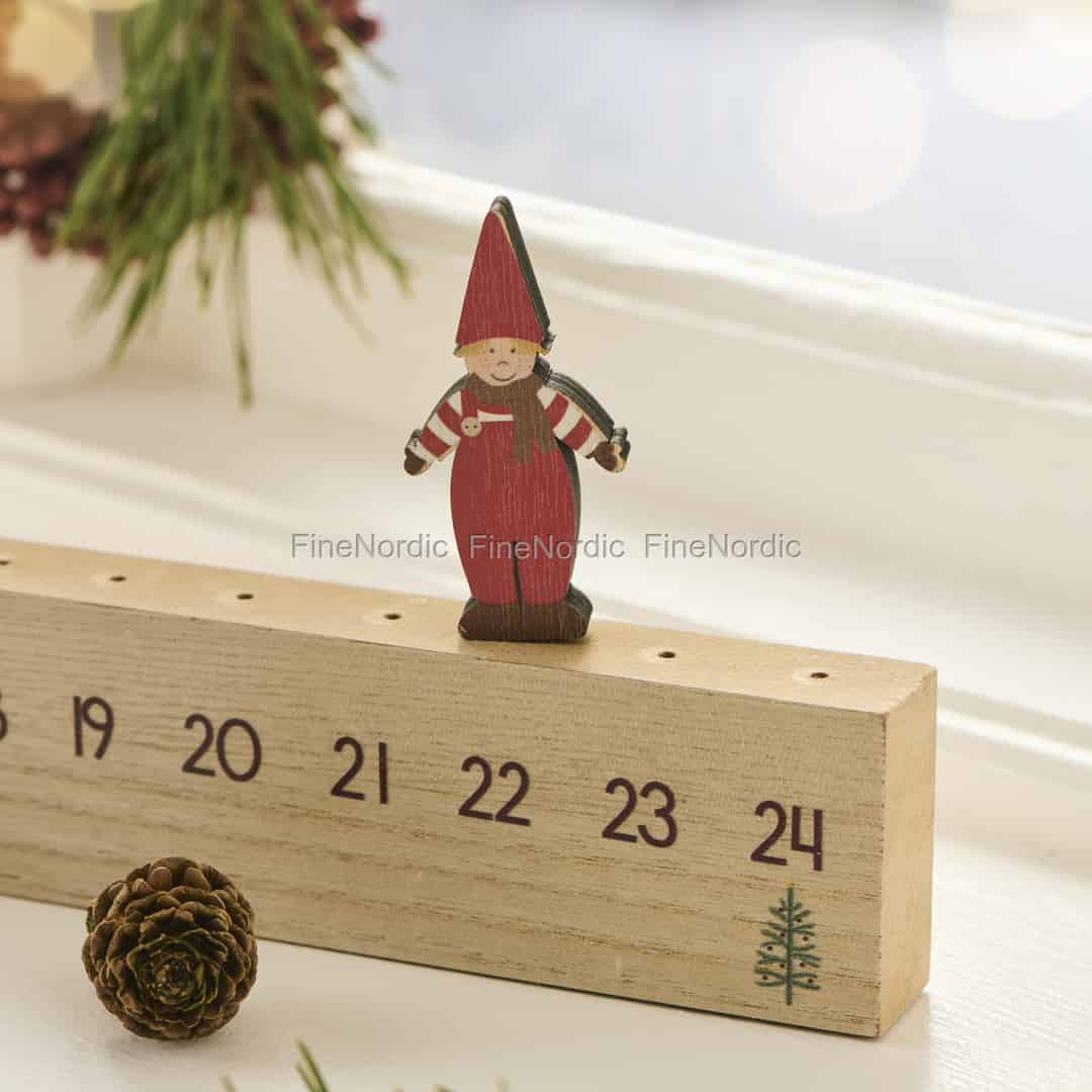 Föreställ dig den stilla glädjen varje decembermorgon när du flyttar den lilla nissen ett steg närmare julafton. Denna vackra träkalender från Ib Laursen förvandlar nedräkningen till en kär daglig ritual, fylld av enkel, rustik charm.