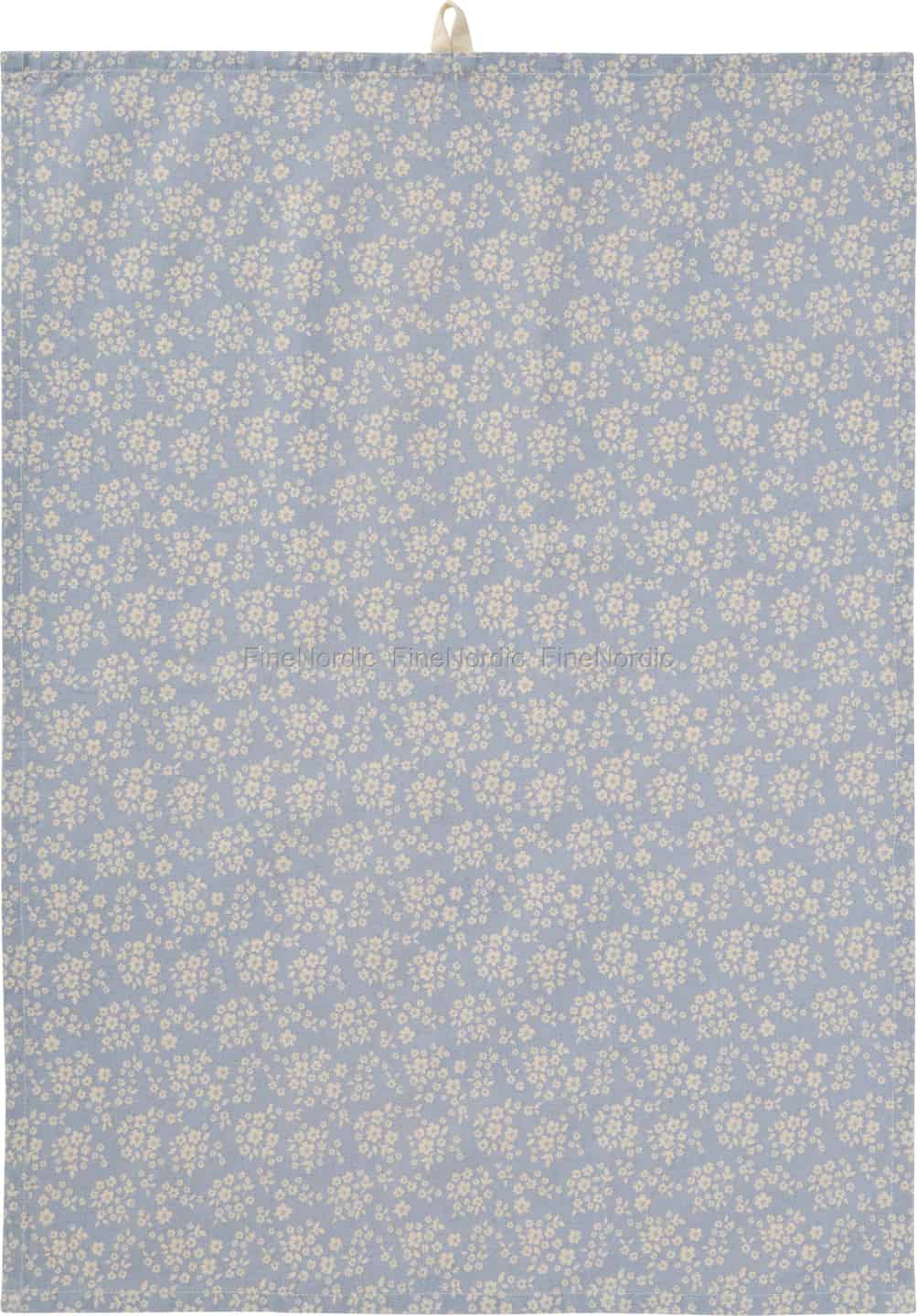 Introducera en viskning av lantlig charm i din vardag med kökshandduken Agathe. Dess milda ljusblå yta, prydd med fina naturfärgade blommor, skänker en känsla av lugn och enkel skönhet till hemmets hjärta.