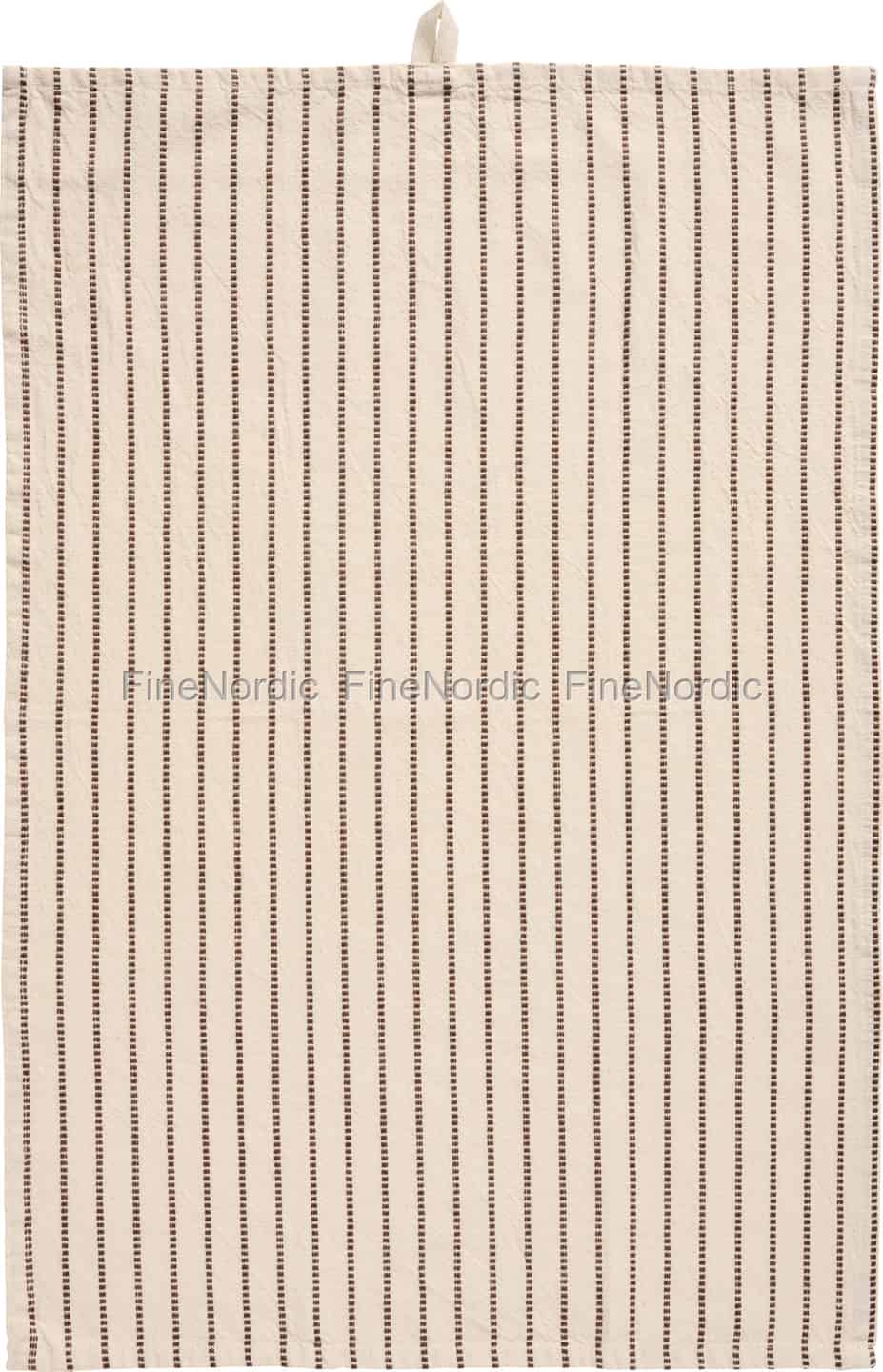 Skönheten i skandinavisk design ligger ofta i dess enkelhet och koppling till naturen, en princip som vackert fångas av kökshandduken Dixie. Dess design talar om stilla morgnar och glädjen i de dagliga ritualerna. Den naturliga, oblekta bomullen utgör en mjuk, taktil bakgrund för de jordnära bruna ränderna, som är invävda direkt i tyget för en fyllig, texturerad finish som känns ärlig och hållbar. Det är en detalj som inte ropar på uppmärksamhet, utan snarare bidrar till en känsla av lugn och ordning i ditt kök.