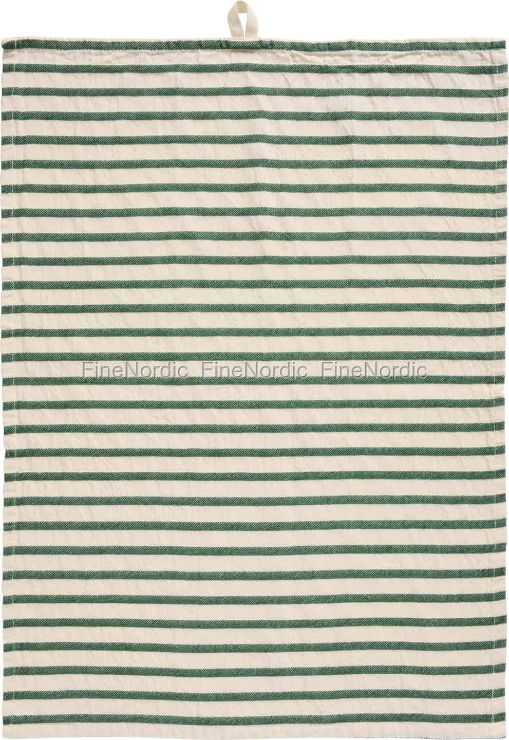 Föreställ dig den enkla glädjen i ett vackert och funktionellt köksredskap. Kökshandduken Eske från Ib Laursen, med sin mjuka, vävda bomull och klassiska mörkgröna ränder, tillför en känsla av naturlig, diskret elegans till dina dagliga rutiner.