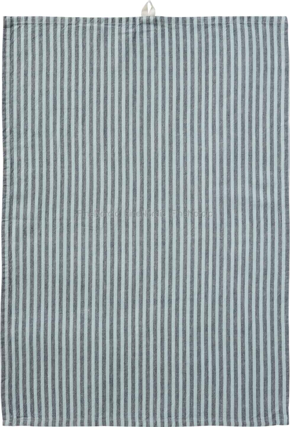Ib Laursen Kökshandduk "Linea" - Grå och turkos med smala ränder