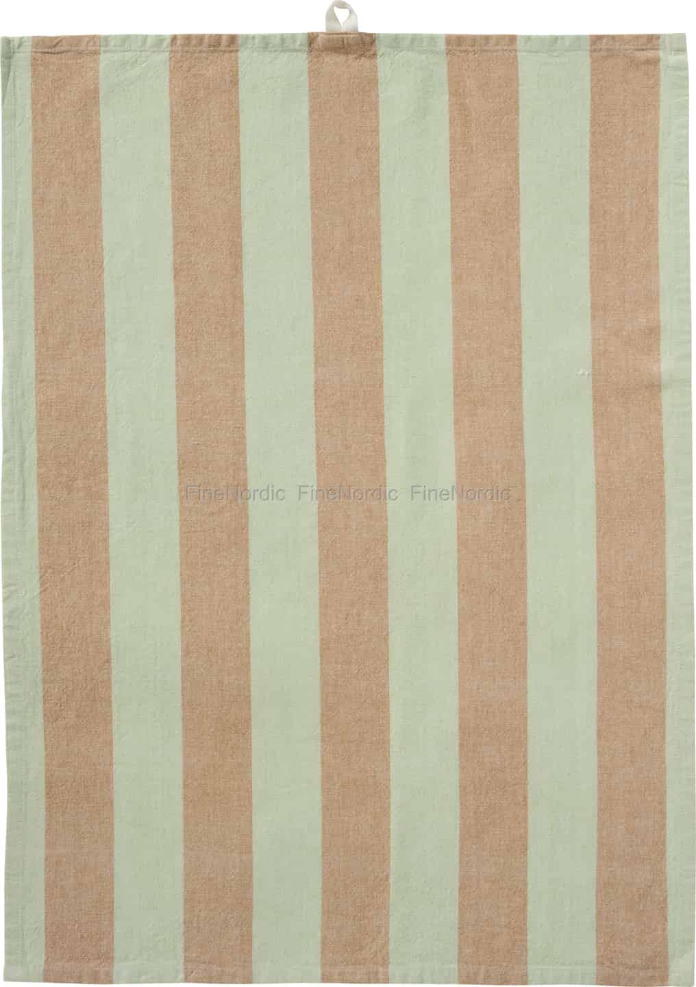 Från hjärtat av det danska designhuset Ib Laursen kommer kökshandduken Linus, en hyllning till den vackra enkelheten. Föreställ dig den hängande från en krok i ditt kök, där dess milda ränder i ljusgrönt och varmt brunt tillför en stillsam färgklick. Skönheten i denna handduk ligger i dess diskreta charm och ärliga material – ett bevis på den skandinaviska övertygelsen att vardagsföremål ska vara både funktionella och vackra att se på. Det är mer än bara en kökshandduk; det är en liten del av ett hem som känns genomtänkt och välkomnande.