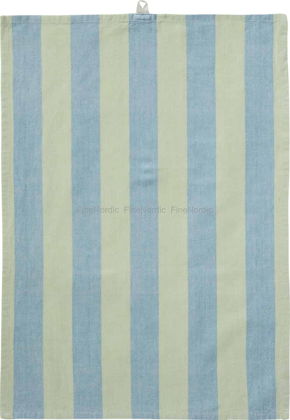 Föreställ dig en mild havsbris och hur det mjuka morgonljuset fyller ditt kök. Kökshandduken Linus, med sina rogivande ränder i dämpat blått och ljusgrönt, fångar precis den känslan och tillför en gnutta enkel, kustinspirerad charm till dina vardagssysslor.