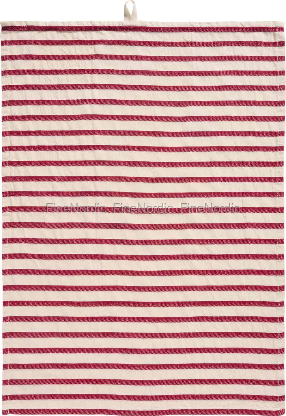 Föreställ dig doften av nybakta pepparkakor medan du lägger sista handen vid juldekorationerna i köket. Kökshandduken Olga, med sina klassiska röda ränder på naturfärgad vävd bomull, för med sig en känsla av tidlös skandinavisk tradition till ditt hem.