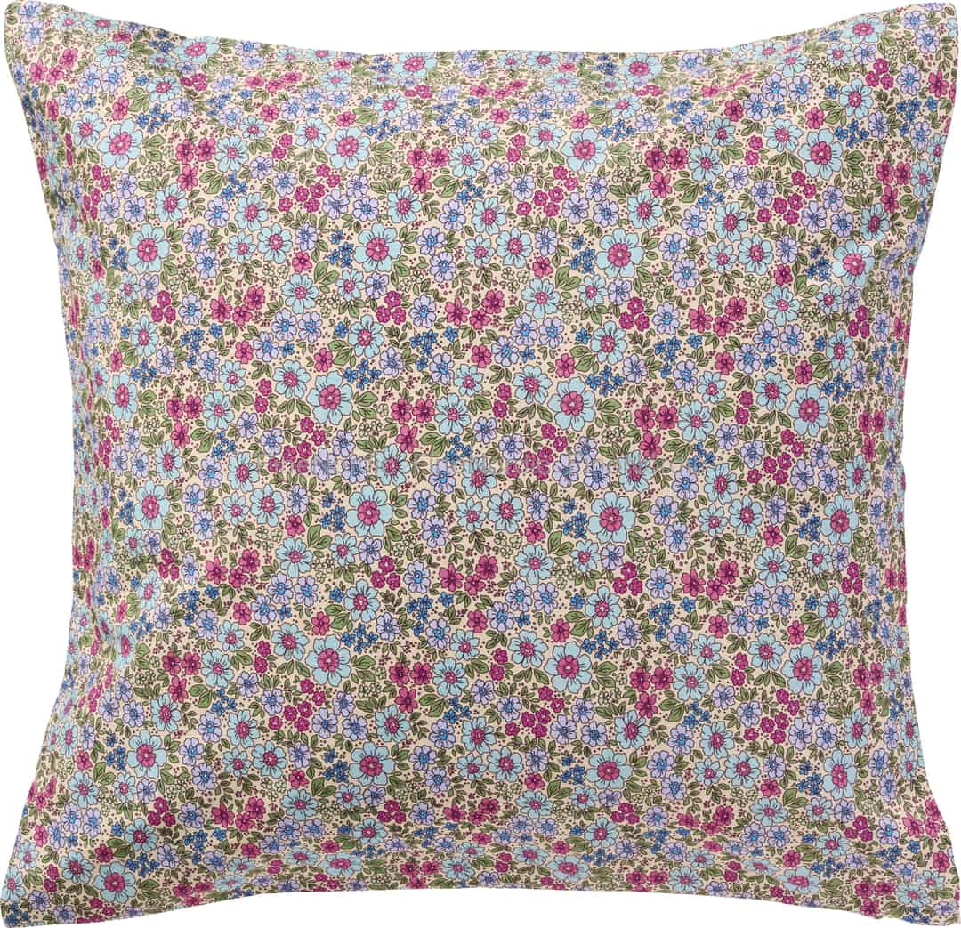 Ib Laursen Kuddfodral - Crème - Turkosa, blå, fuchsia och lila blommor 60 x 60 cm