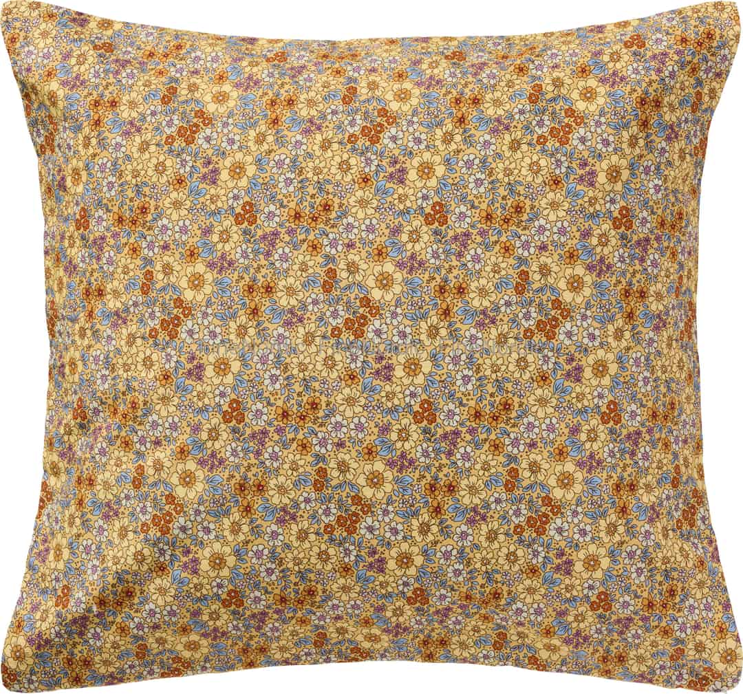 Ib Laursen Kuddfodral - Gult med blommor i gult, blått, orange och lila 60 x 60 cm