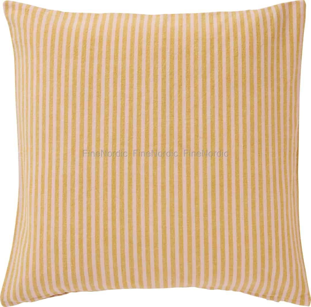 Ib Laursen Kuddfodral "Linea" - med smala ränder i senapsgult och ljusrosa 50 x 50 cm