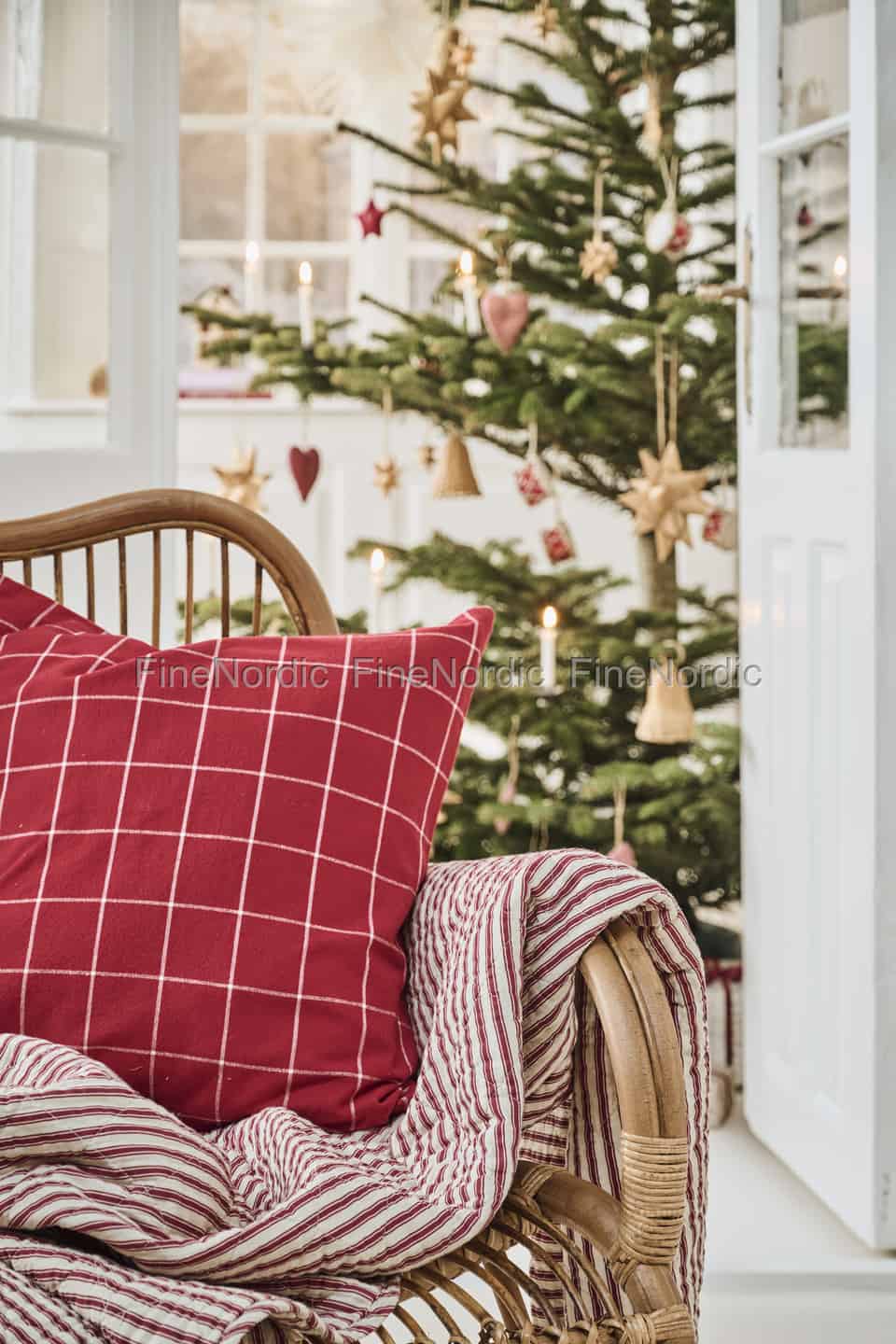 - Skapa en inbjudande och festlig atmosfär: Den djupröda bomullen och det tidlösa rutmönstret tillför omedelbart ett lager av värme och festlig charm, vilket gör din soffa eller fåtölj underbart välkomnande.