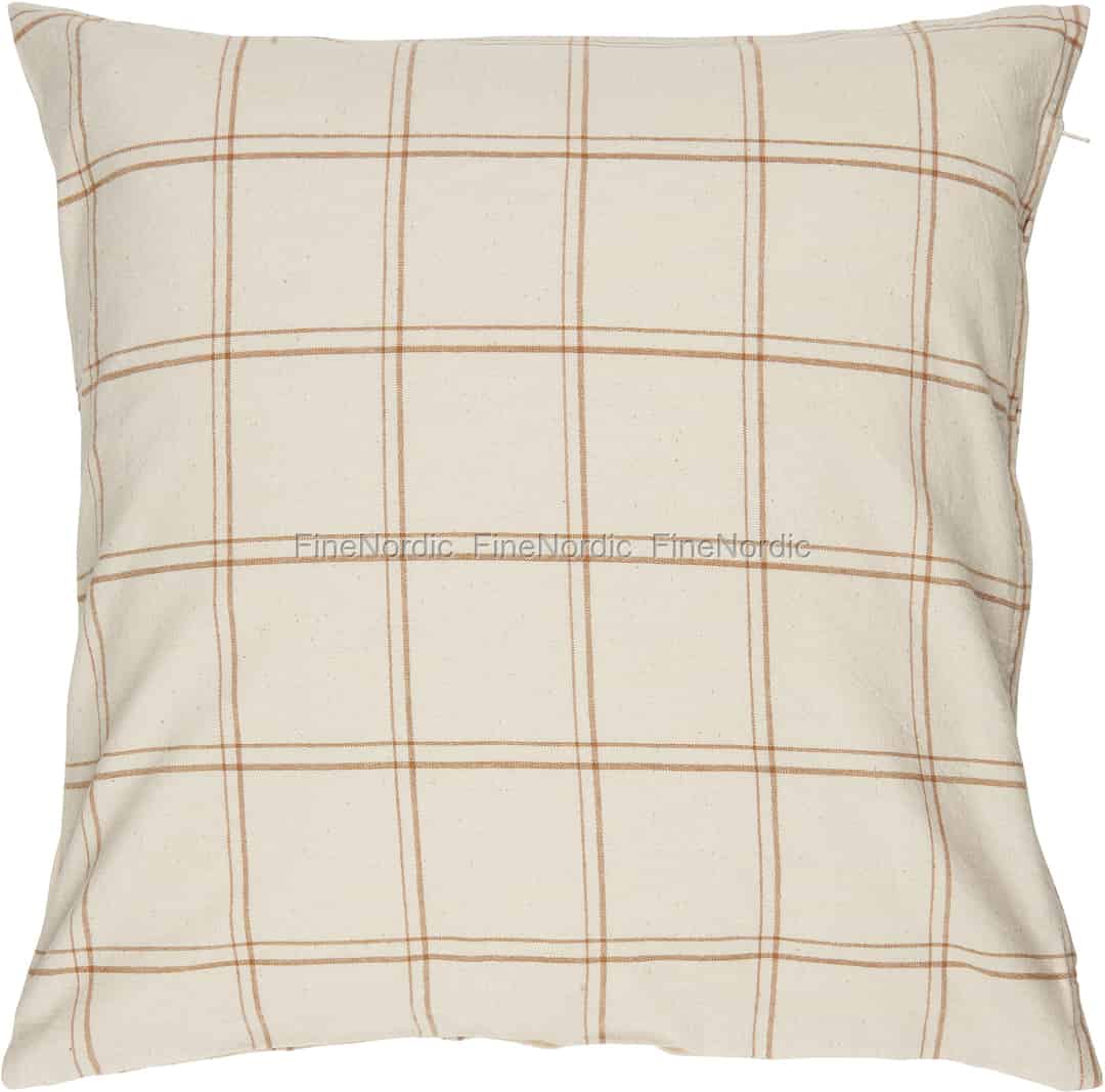 Ib Laursen kuddfodral Theodor natur med rustikt brunt rutmönster 50 x 50 cm, hitta det här på FineNordic.