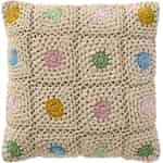 Ib Laursen Kuddfodral - Virkat - Natur - Flerfärgade blommor, Baksida av naturfärgad canvas 50 x 50 cm