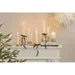 Upptäck den stillsamma charmen hos skandinaviska jultraditioner med denna förtrollande änglaljusstake från Ib Laursen. Dess vackert enkla form, tillverkad av robust metall, fångar essensen av ett fridfullt firande. Den varma, mörkkräma finishen utgör en mjuk, neutral bakgrund som låter ljuslågans milda flimmer spela huvudrollen. Föreställ dig en som står vakt på din spiselkrans eller ett par som skapar ett symmetriskt välkomnande på en fönsterbräda, där deras siluetter kastar mjuka skuggor när kvällen sänker sig.