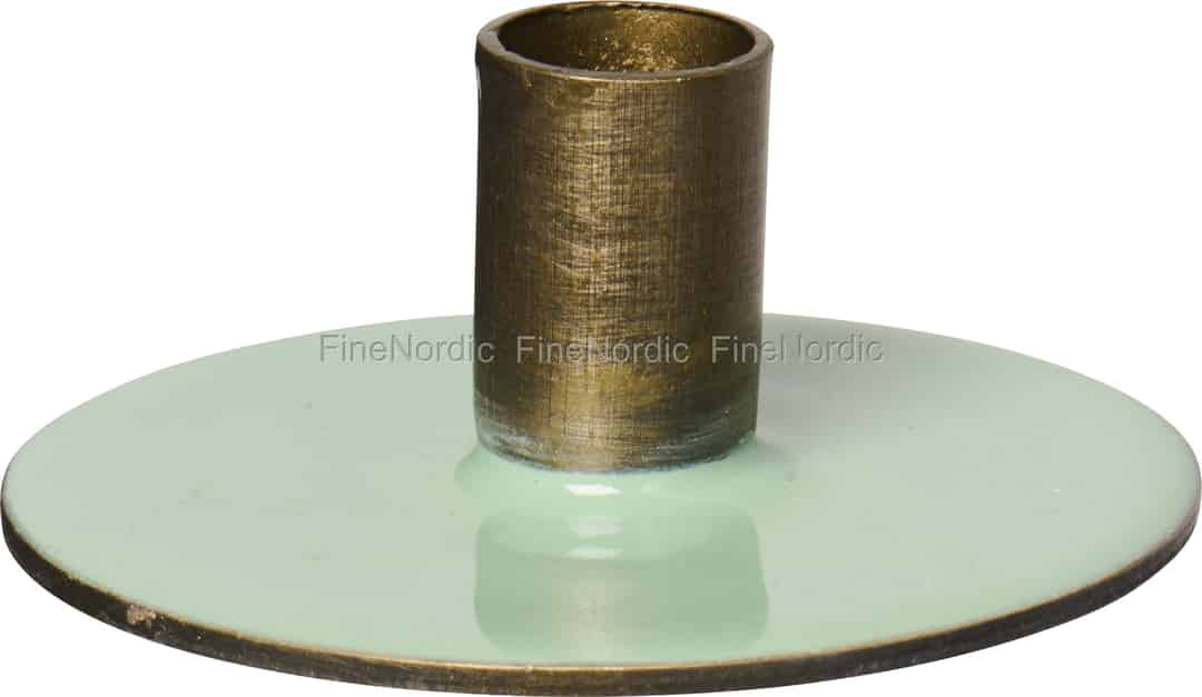 Bjud in ett mjukt sken i ditt hem med denna charmiga lilla ljusstake från Ib Laursen. Dess glansiga, ljusgröna fot och varma, borstade metallhållare skapar en vacker kontrast, redo att omfamna ett enda, smalt ljus för en stund av stilla eftertanke.