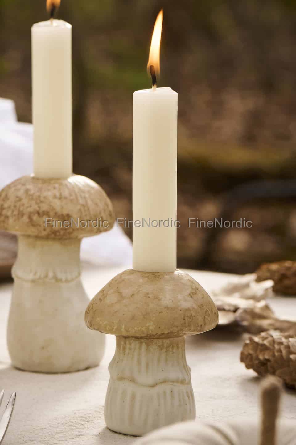 - En finurlig, naturinspirerad design: Formad som en charmig skogssvamp, tillför denna ljusstake en touch av lekfull karaktär och organisk skönhet till vilken hylla, spiselkrans eller bordsdukning som helst.