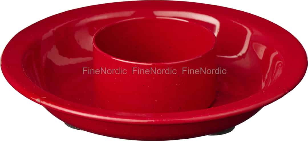 Upptäck den enkla glädjen med denna förtjusande ljusstake från Ib Laursen. Dess glansiga, julröda yta är prydd med små svarta stänk som påminner om traditionell emalj och ger ett rustikt och texturerat uttryck. Tillverkad av robust metall känns den betryggande solid i din hand. Designen är underbart okomplicerad: en central kopp som säkert håller ditt favoritljus på 3,8 cm, placerad i ett skyddande fat som ger både balans och sinnesro.