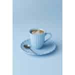 Föreställ dig att du håller denna vackra mugg i dina händer, och känner de mjuka rillorna som en behaglig textur mot dina fingertoppar. Den fridfulla nyansen "Blue Bell" från Ib Laursens älskade Mynte-kollektion ger en viskning av lugn till din varma favoritdryck och förvandlar ett enkelt ögonblick till en värdefull ritual.